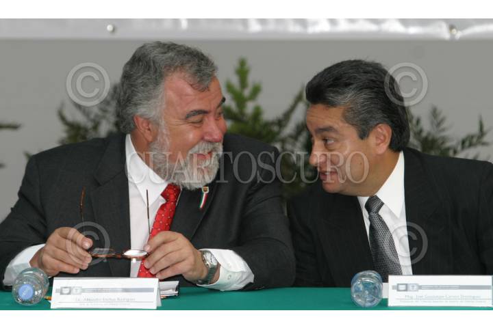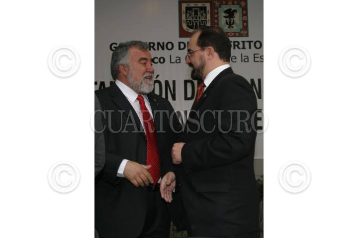 MEXICO, D.F. 20OCTUBRE2006.- Alejandro Encinas Rodriguez, jefe de gobierno del D.F. conversa con José Guadalupe Carrera Dominguíguez, presidente del Tribunal Superior de Justicia del D.F. durante la instalación del Consejo para Prevenir y Erradicar la Discriminación en el D.F. FOTO: NELLY SALAS/CUARTOSCURO.COM