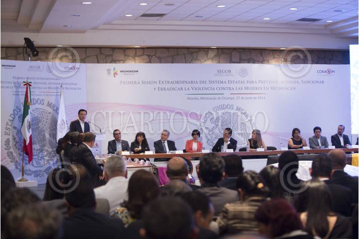 MORELIA, MICHIOACÁN, 27JUNIO2016.- Miguel Ángel Osorio Chong, secretario de Gobernación, durante la Primera Sesión Extraordinaria del Sistema Estatal para Prevenir, Atender, Sancionar y Erradicar la Violencia contra las Mujeres en Michoacán. FOTO: SEGOB /CUARTOSCURO.COM