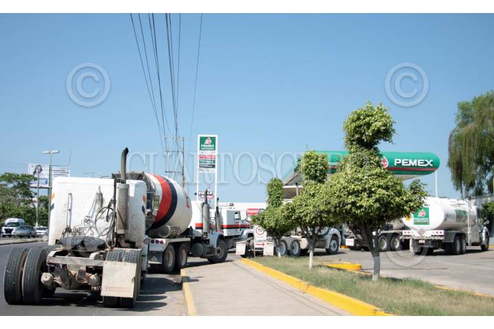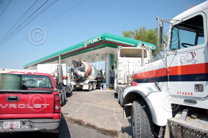 VILLAHERMOSA, TABASCO, 24MARZO2009.- El combustible diesel empieza a escasear en distintos expendios de autoservicios de gasolineras en la capital tabasqueña. Ante tal situación varios conductores con sus pesados camiones realizan desde tempranas horas largas colas para abastecerse del servicio que es a cuenta gotas. FOTO: MARCO POLO GUZMÁN HERNÁNDEZ/CUARTOSCURO.COM