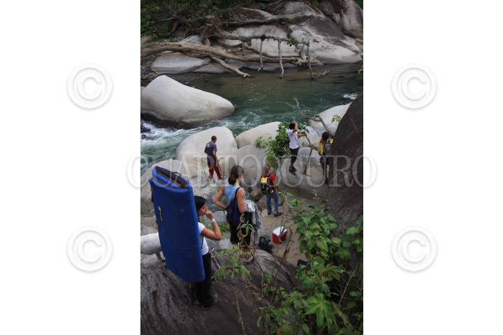 BOQUILLAS, CHIAPAS, 30DICIEMBRE2008.- Jóvenes de de Alemania, Guatemala y México participan en el festival “Toca la Roca”, junto al río Boquillas, al sur del estado en la frontera con Guatemala. En esta justa participan un grupo de 12 escaladores que muestra capacidad física y dominio de si mismo para lograr vender la dificultad de escalar las rocas. FOTO: COSME RADA/CUARTOSCURO.COM