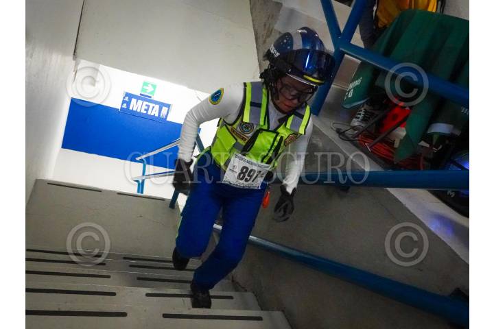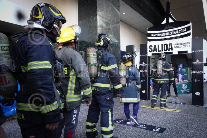 CIUDAD DE MÉXICO, 15DICIEMBRE2024.- Escuadrón de rescate y emergencias, participan en la edición 2024 de la "Carrera Vertical" que se realiza en el World Trade Center; Los participantes subieron 42 pisos que equivalen a 868 escaleras. FOTO: MAGDALENA MONTIEL/CUARTOSCURO.COM