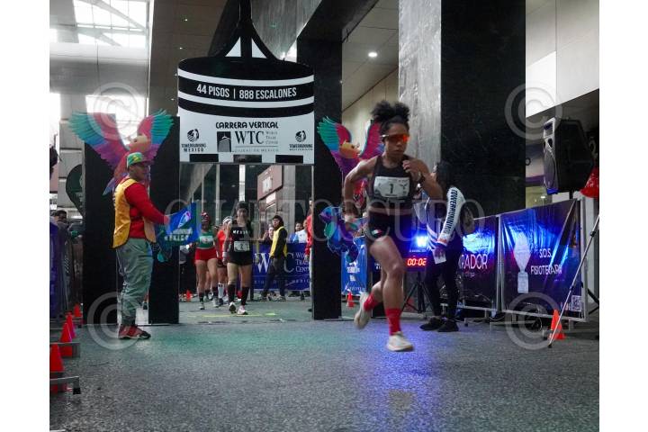 CIUDAD DE MÉXICO, 15DICIEMBRE2024.- Banderazo de salida de la "Carrera Vertical" edición 2024, en el World Trade Center; Los participantes subieron 42 pisos que equivalen a 868 escaleras.FOTO: MAGDALENA MONTIEL/CUARTOSCURO.COM