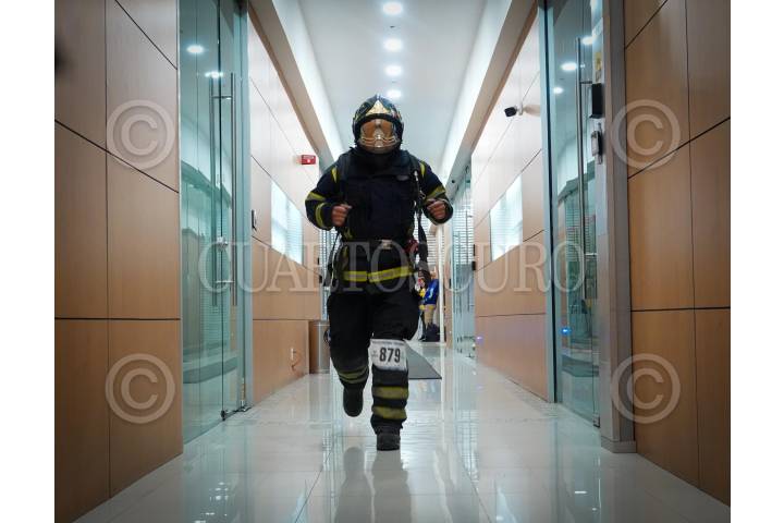 CIUDAD DE MÉXICO, 15DICIEMBRE2024.- Bomberos de distintas demarcaciones de la ciudad, participan en la edición 2024 de la "Carrera Vertical" que se realiza en el World Trade Center; Los participantes subieron 42 pisos que equivalen a 868 escaleras.FOTO: MAGDALENA MONTIEL/CUARTOSCURO.COM