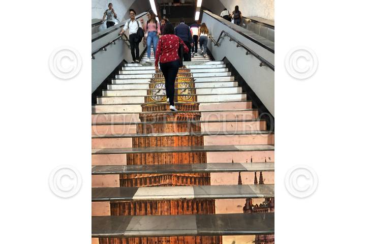 CIUDAD DE MÉXICO, 18SEPTIEMBRE2018.- En las escaleras del metro Auditorio Nacional los pasajeros pueden apreciar el Big Ben Británico, esto como parte de una exposición sobre la cultura de Gran Bretaña, la imagen fue colocada en las escaleras y puede ser disfrutada en el ir y venir por este sistema de transporte. FOTO: MOISÉS PABLO /CUARTOSCURO.COM