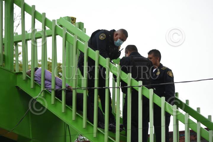 Un hombre fue localizado muerto en un puente peatonal en la alcaldía Iztacalco, al parecer se suicidó.