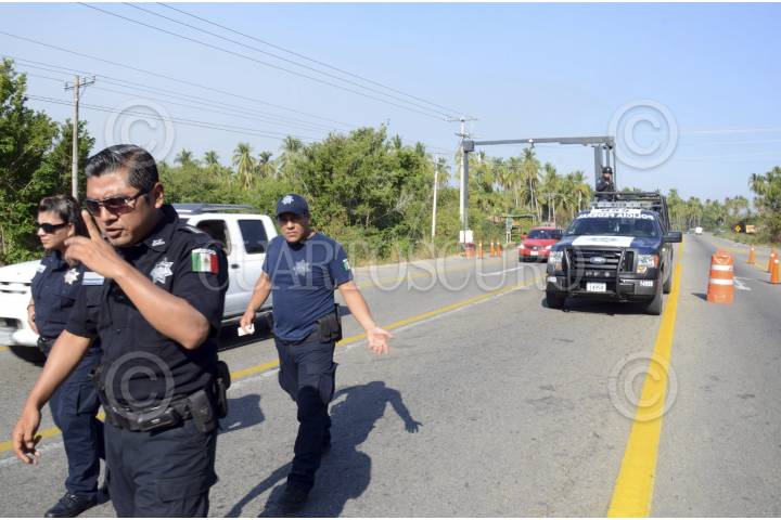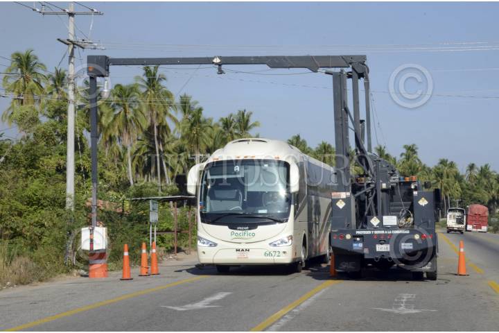 COYUCA DE BENÍTEZ, GUERRERO, 17ABRIL2013.- Sin vigilancia, policías federales montaron una grúa con el sistema rayos gama para la revisión y escaneo de los vehículos que transitan por la carretera federal Acapulco-Zihuatanejo a la altura del entronque de la vereda que va a la comunidad de Yetla, municipio de Coyuca de Benítez. Después de diez minutos llegaron agentes de esa corporación para tratar de impedir el trabajo periodístico que realizaba este reportero gráfico al que mantuvieron detenido por un lapso de casi una hora pese a que se identificó como trabajador de prensa y con credencial oficial del IFE, incluso en tono prepotente el agente que dijo estar al mando y no porta uniforme de la corporación llegó con amenazas y lenguaje altisonante de quitar el equipo de trabajo que consiste en una cámara fotográfica. FOTO: BERNANDINO HERNÁNDEZ /CUARTOSCURO.COM
