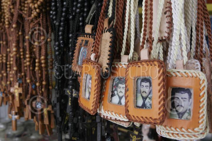 CULIACÁN, SINALOA 08MAYO2009.- Escapularios, rosarios, dijes y collares con la imagen de Jesús Malverde son parte de los accesorios que venden en la capilla. FOTO: IVAN STEPHENS/CUARTOSCURO.COM