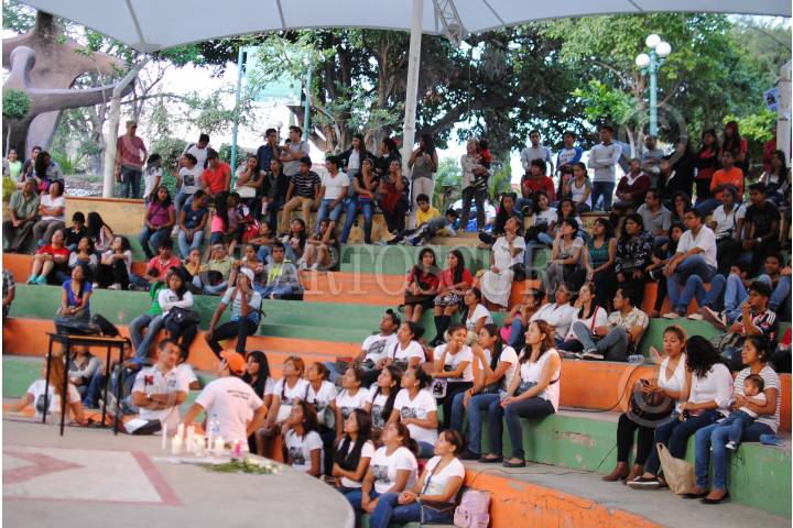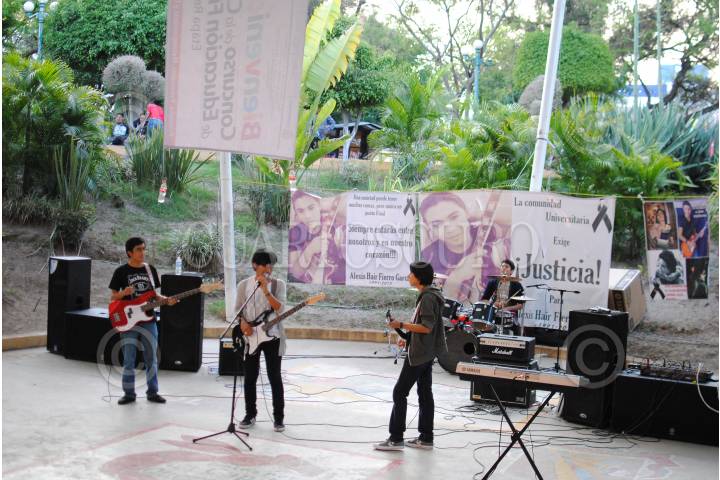 CHILPANCINGO, GUERRERO, 21MAYO2015.- Estudiantes de Ciencias de la Educación de la Universidad Autónoma de Guerrero (UAGro), marcharon para exigir justicia al gobierno del estado, para esclarecer el homicidio de Alexis Hair Fierro García, que fue encontrado muerto la madrugada del 10 de Mayo, cerca de la Presa del Cerrito Rico ubicada al norte de la ciudad; señalaron sus compañeros. Después de la marcha realizaron un concierto en el teatro hundido de la Alameda Granados Maldonado, para a dar conocer el hecho y recolectar recurso económico para entregarlos a sus padres. FOTO: JOSÉ I. HERNÁNDEZ / CUARTOSCURO.COM