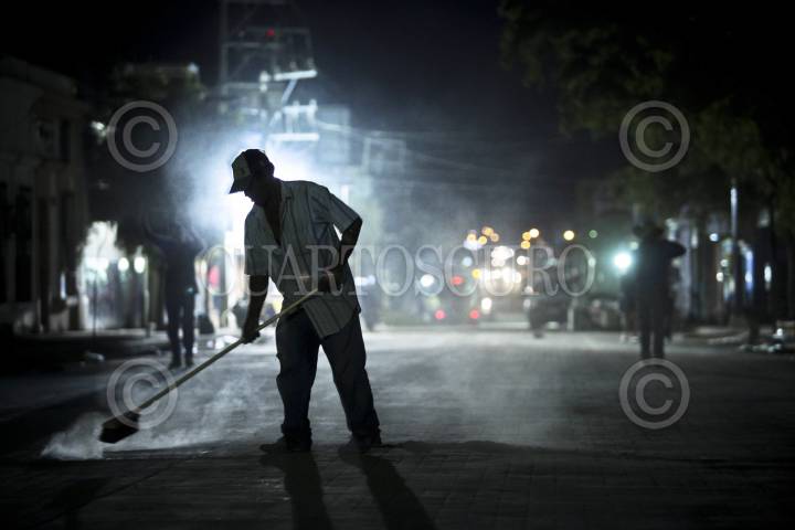 CULIACAN, SINALOA, 05DICIEMBRE2012.- Trabajador del ayuntamiento da los últimos detalles a una de las principales calles del primer cuadro de la ciudad, ya que próximamente sera inaugurada por remodelación. FOTO: RASHIDE FRIAS /CUARTOSCURO.COM