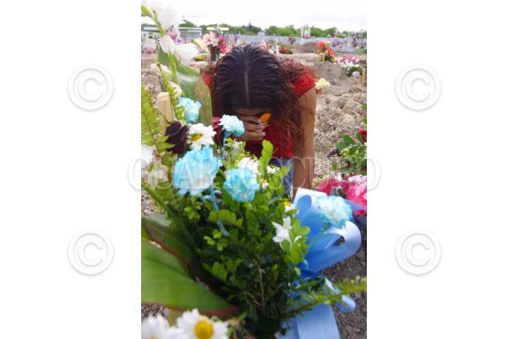 Piedras Negras, Coahuila 08 ABRIL 2004.- Una de las tías de los niños Hernández Huitrón, se despide de la tumba de su sobrina Lilia, quien falleció a causa de las pasadas inundaciones en esta ciudad fronteriza. FOTO: JORGE LOPEZ/CUARTOSCURO.COM