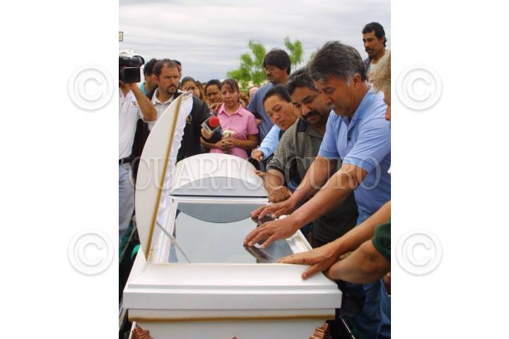 Piedras Negras, Coahuila 08 ABRIL 2004.- El cuerpo de Antonio Hernández Hutrón fue trsladado hasta el lugar donde fueron enterradas sus hermanas Lilia y Adriana, los cuales fallecieron a acusa del desbordamiento del río Escondido FOTO: Jorge López/CUARTOSCURO.COM