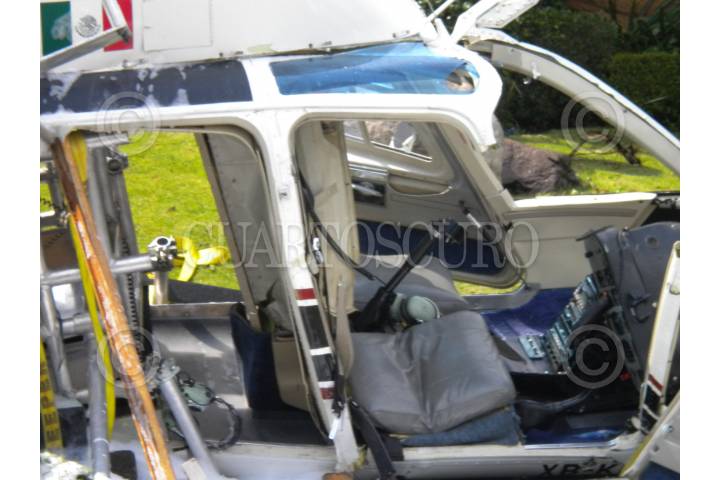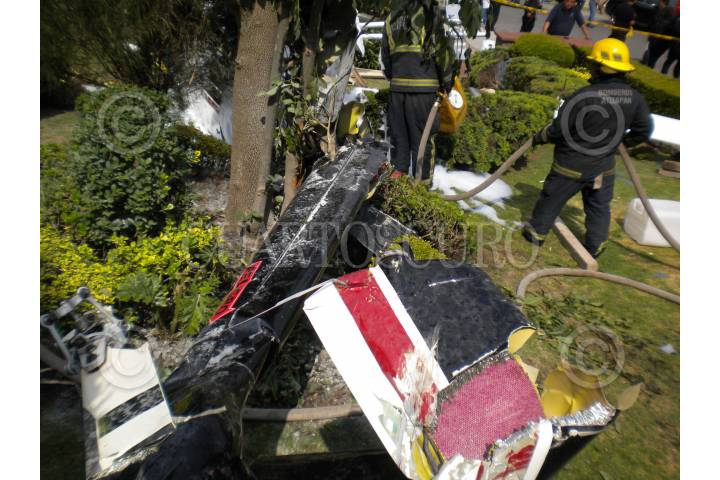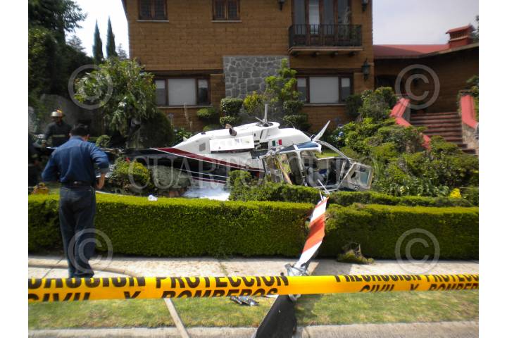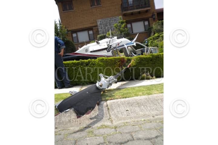 ATIZAPÁN DE ZARAGOZA, ESTADO DE MÉXICO, 05JUNIO2010.- Un Helicóptero tipo Bell, con matricula XB KRK de uso particular, se desplomo por fallas técnicas quedando en el jardín de una residencia ubicada en la calle Valle de Maple esquina con Valle de Pera en el conjunto exclusivo Club de Golf Valle Escondido. FOTO: ALBERTO VERA/CUARTOSCURO.COM