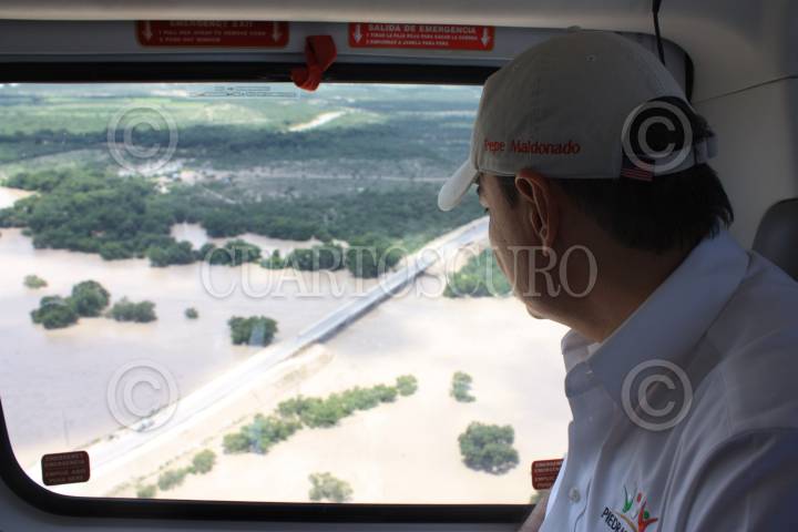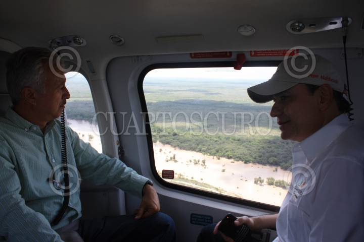 PIEDRAS NEGRAS, COAHUILA, 07JULIO2010.- El licenciado José Manuel Maldonado Maldonado, presidente municipal de Piedras Negras y el licenciado Horacio del Bosque Dávila, secretario de Obras Públicas del estado de Coahuila durante un recorrido realizado sobre el cauce del río Escondido donde supervisaban los daños causados por la creciente de los ríos que ayer amenazaban Piedras Negras. Mismo recorrido que realizaron esta mañana del miércoles y en el que perdieran la vida junto con el ingeniero Ricardo Garza Bermea, director de protección civil municipal. FOTO: MANUEL RODRIGUEZ MURO/ZOCALO DE PIEDRAS NEGRAS/CUARTOSCURO.COM