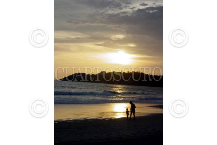 PUERTO ESCONDIDO, OAXACA, 11AGOSTO2005.- Las playas de Puerto Escondido, son un agradable lugar turisco para visitar. Una mujer con su hijo disfrutan del puerto al caer la tarde. FOTO: Blanca Hernandez/CUARTOSCURO.COM