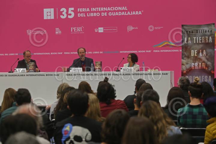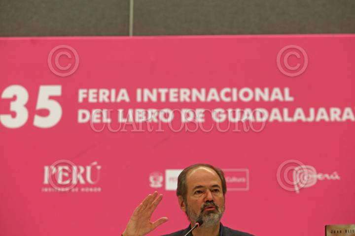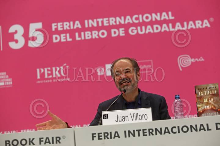 Juan Villoro escritor mexicano, durante la presentación de su libro, esta tarde en expo Guadalajara.
