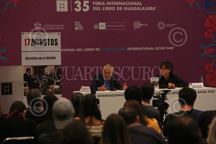 Jorge Ramos escritor mexicano, durante la presentación de su libro, esta tarde en expo Guadalajara.