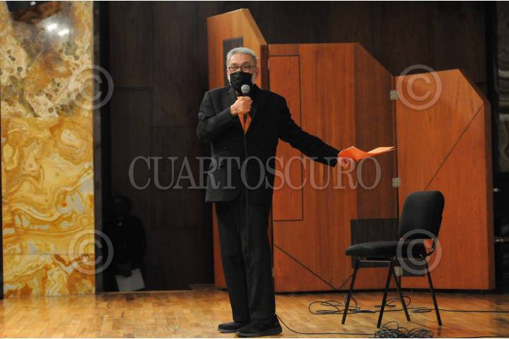 Ricardo Yañez, poeta mexicano, participa en el conversatorio realizado en el Palacio de Bellas Artes.