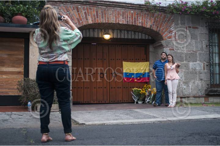 MEXICO, D.F., 20ABRIL2014.- Turistas procedentes de Peru acudieron a la casa del escritor colombiano Gabriel Garcia Marquez, quien fallecio el pasado 17 de abril, a tomarse fotografias. FOTO: IVAN STEPHENS /CUARTOSCURO.COM