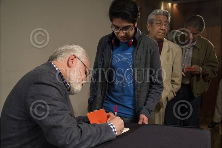 MÉXICO, D.F., 01FEBRERO2015.- El escrito mexicano Eduardo Langagne, presentó su libro Verdad posible en el Palacio de Bellas Artes, acompañado de los escritores Antonio Deltoro y Eduardo Cesar, quienes agradecieron al autor por la creación de este libro que contiene una selección de grandes poemas. FOTO: ISABEL MATEOS /CUARTOSCURO.COM