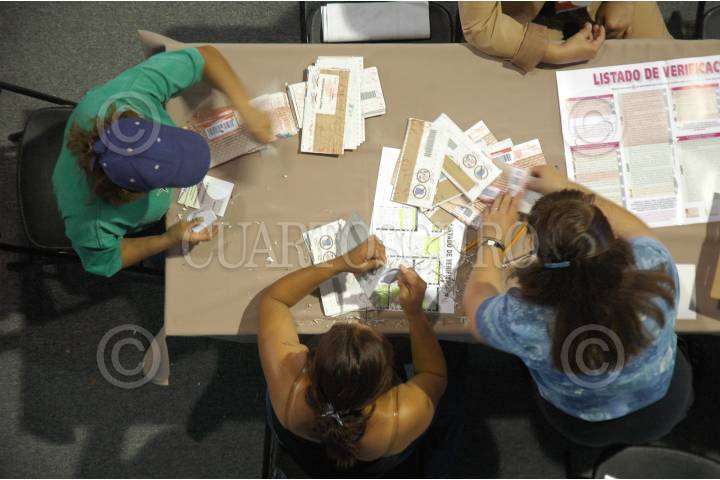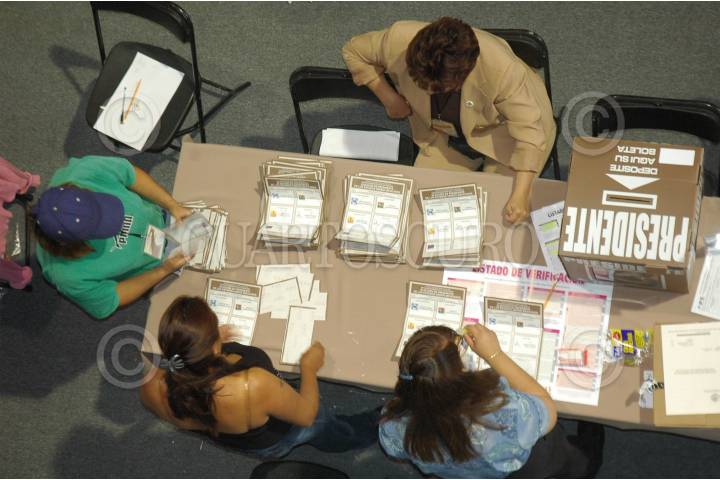 MÉXICO, D.F. 02JULIO2006.- En las instalaciones de una institución educativa el IFE realiza el conteo de los votos de los mexicanos en el extranjero. FOTO: Iván Stephens/CUARTOSCURO.COM