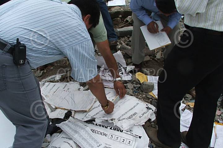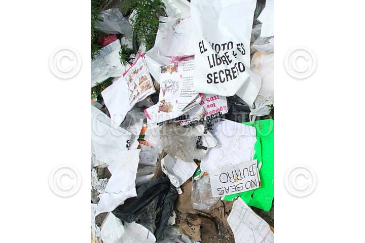 NEZAHUALCOYOTL, EDOMEX, 04JULIO2006.- Encuentran en el tiradero del Bordo de Xochiaca, talonarios de boletas electorales, mamparas, informes de resultados, boletas de escrutinio y computo, plasticos y carpetas electorales que se utilizaron en pasado 2 de julio en las elecciones presidenciales pertenecientes a el distrito 31. FOTO: Saúl López/CUARTOSCURO.COM