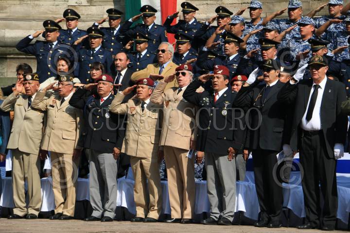 CIUDAD DE MÉXICO, 08MAYO2025.- Ricardo Trevilla, secretario de la Defensa Nacional y Óscar René Rubio, comandante de la Fuerza Aérea Mexicana, encabezaron la ceremonia póstuma en Honor al Sargento 1/o. de Transmisiones Retirado César Maximiliano Gutiérrez Marín, último integrante del "Escuadrón 201" unidad aérea mexicana que participó en la segunda guerra mundial. La ceremonia fue realizada en el monumento a la Fuerza Aérea Expedicionaria Mexicana ubicado en el Bosque de Chapultepec. FOTO: MARIO JASSO/CUARTOSCURO.COM