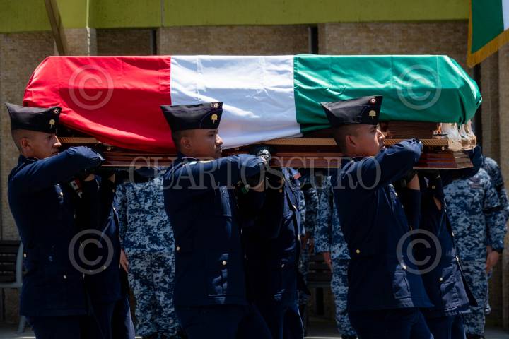 Ceremomia de recepción y honores fúnebres al capitán 2/o de Fuerza Aérea Especialista en Mantenimiento Aéreo Luis Guzmán Reveles.