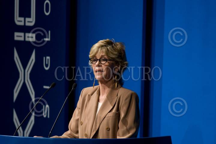 MÉXICO D.F.,09SEPTIEMBRE008.- La actiz, escritora y activista política Jane Fonda, durante su participación el encuentro ¨México siglo XXI¨, evento organizado por fundacion telmex, donde cientos de becarios se dieron cita en el auditorio nacional, para escuchar ponencias de personajes nacionales e internacionales. FOTO: SÁSHENKA GUTIÉRREZ/CUARTOSCURO.COM