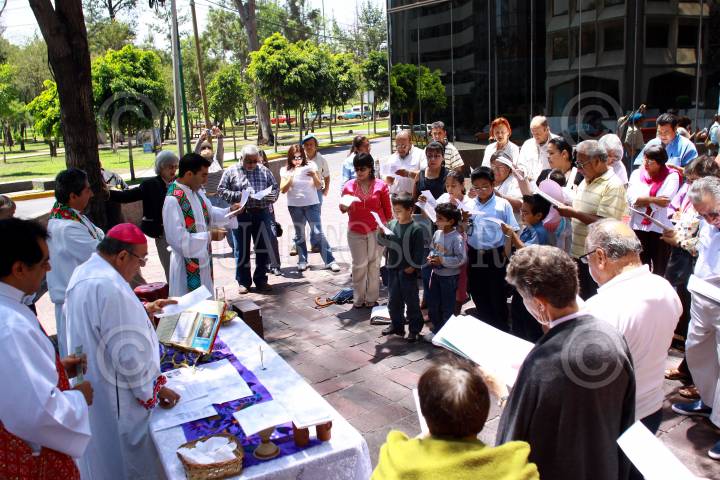 MÉXICO, D.F., 19JULIO2009.- Misa por la Familia de Pasta de Conchos a casi 4 años del fallecimiento de los mineros, algunos familiares se dieron cita en el edificio de grupo México para escuchar la homilia presidida por el obispo emerito de San Cristóbal de las Casas Samuel Ruiz FOTO:SÁSHENKA GUTIÉRREZ/CUARTOSCURO.COM