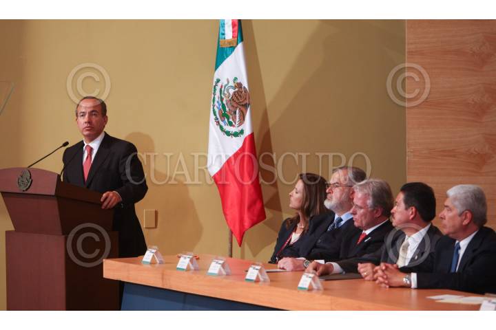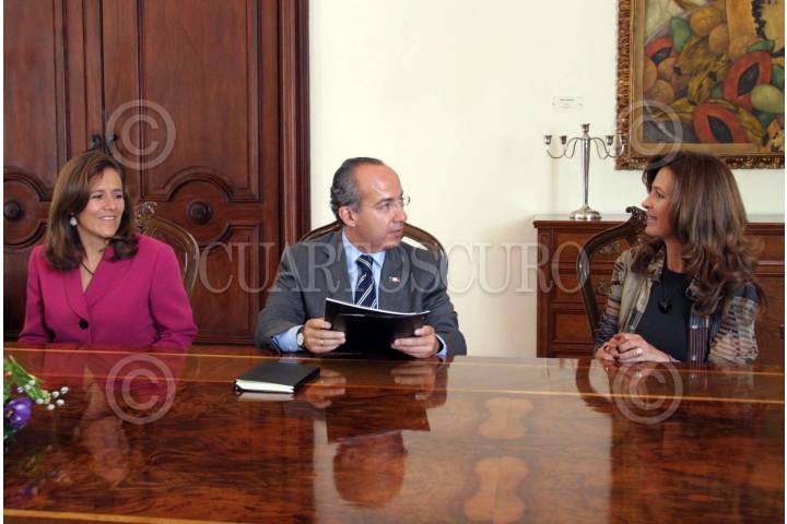 MEXICO, D.F., 15OCTUBRE2009.- Margarita Zavala, primera dama, Felipe Calderón Hinojosa, Presidente de México y Ana Franco de Wittmann, se reunieron con el comité organizador del "Foro Víctimas del Secuestro: Es Hora de Escuchar", el cual se realizó el pasado 30 de septiembre en el Instituto Nacional de Rehabilitación. FOTO: ARIEL GUTIERREZ/CUARTOSCURO.COM