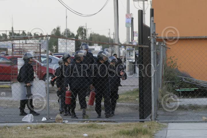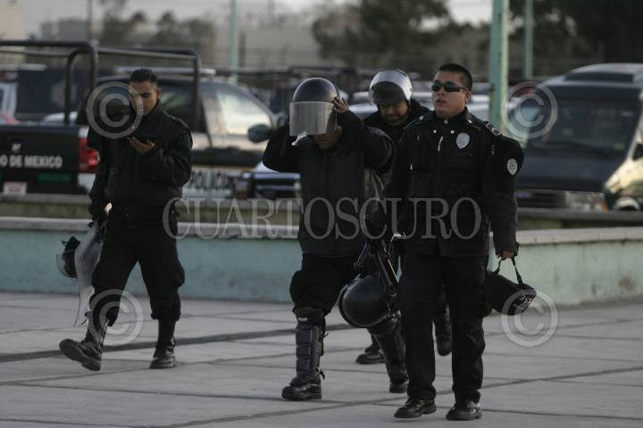 CD. NEZA EDO. DE MEX.- Reos del Penal Neza Bordo se amotinaron esta tarde. En el lugar elementos de la Agencia de Seguridad Estatal antimotines repelieron agresiones con gas lacrimogeno. En el lugar se escucharon balazos. FOTO: SAÚL LÓPEZ/CUARTOSCURO.COM