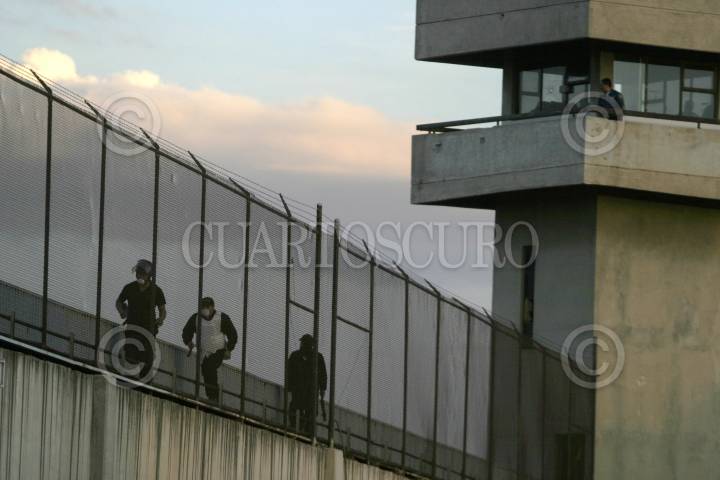 CD. NEZA EDO. DE MEX.- Reos del Penal Neza Bordo se amotinaron esta tarde. En el lugar elementos de la Agencia de Seguridad Estatalantimotines repelieron agresiones con gas lacrimogeno. En el lugar se escucharon balazos. FOTO: SAÚL LÓPEZ/CUARTOSCURO.COM
