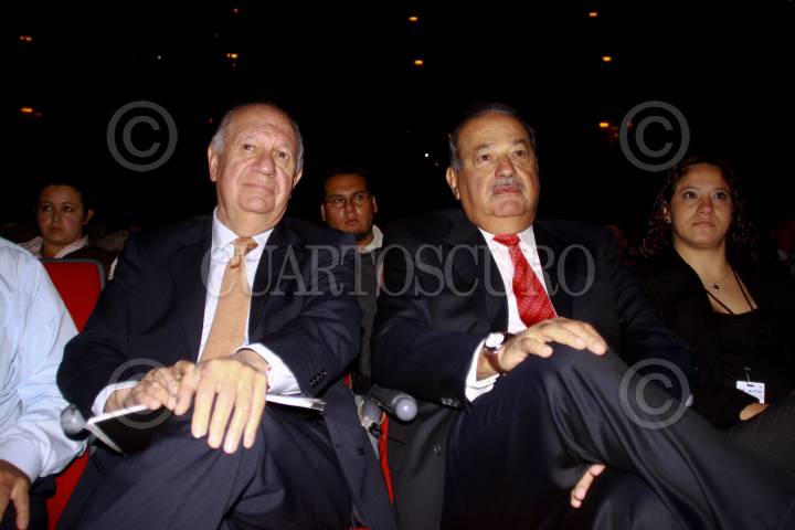 MÉXICO, D.F., 08SEPTIEMBRE2009.- El ex Presidente Chileno Ricardo Lagos, Carlos Slim Helú, Presidente de Grupo CarsoPresidente de Grupo Carso durante el evento "México Siglo XXI" organizado por fundación Telmex, donde se dieron cita mas de 10.000, donde escucharon las ponencias de personajes nacionales e internacionales FOTO: SÁSHENKA GUTIERREZ/CUARTOSCURO.COM