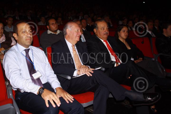 MÉXICO, D.F., 08SEPTIEMBRE2009.- Marco Antonio Slim Domit, director de Inbursa, Ricardo Lagos, ex Presidente Chileno Carlos Slim Helú, Presidente de Grupo CarsoPresidente de Grupo Carso durante el evento "México Siglo XXI" organizado por fundación Telmex, donde se dieron cita mas de 10.000, donde escucharon las ponencias de personajes nacionales e internacionales FOTO: SÁSHENKA GUTIERREZ/CUARTOSCURO.COM