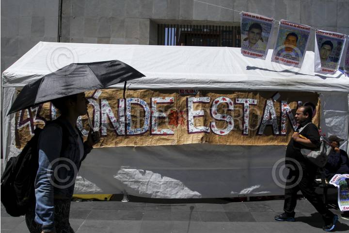 CIUDAD DE MÉXICO, 07JULIO2016.- Familiares de los 43 estudiantes desaparecidos de Ayotzinapa, mantienen un plantón en las puertas de la Secretaría de Relaciones Exteriores (SRE), en de manda de que la secretaria Claudia Ruiz Massieu, cumpla con la firma de compromisos para solicitar nuevamente a la Comisión Interamericana la participación del GIEI para las investigaciones del caso en Iguala, Guerrero, el 26 de septiembre de 2014. FOTO: ADOLFO VLADIMIR /CUARTOSCURO.COM