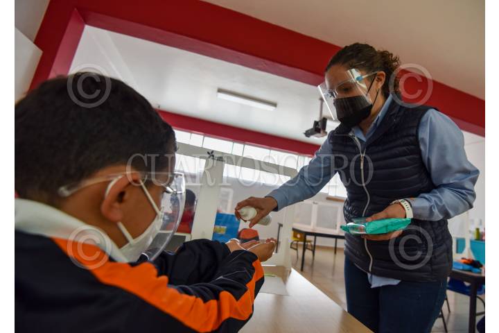Escuelas particulares en el Estado de México alistan el posible regreso a clases en la entidad, aplicando los diversos protocolos de higiene para mantener a los estudiantes, maestros y personal administrativo libre de cualquier contagio por COVID-19.