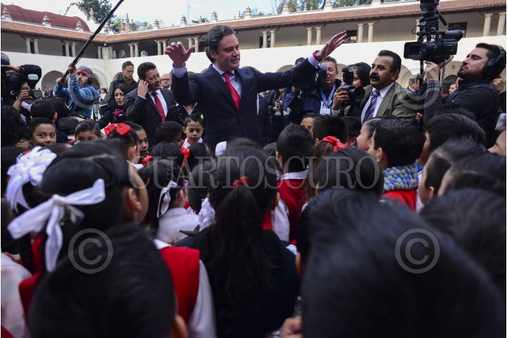 MÉXICO, D.F., 25ENERO2016.- Como cada lunes el secretario de educación publica visitó una de las escuelas de educación primaria del país, en esta ocasión asistió a la escuela primaria Benito Juárez ubicada en la colonia Roma, acompañado de Miguel Ángel Mancera y Graco Ramírez, gobernador de Morelos. FOTO: ISABEL MATEOS /CUARTOSCURO.COM