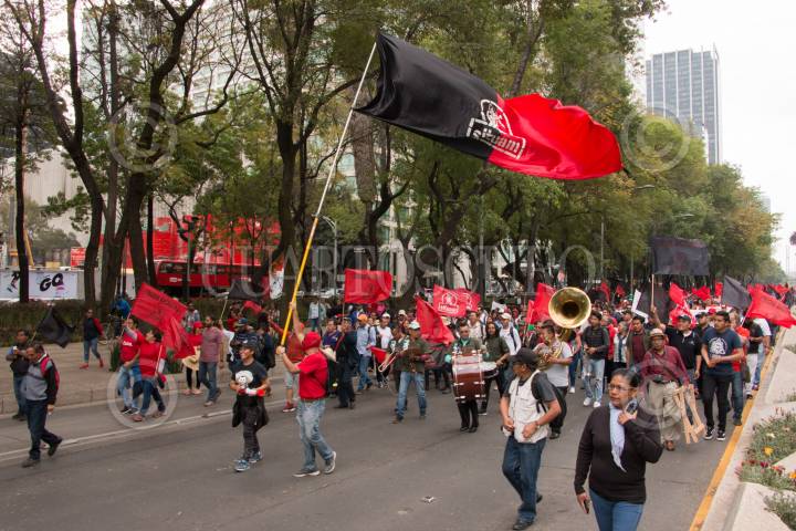 CIUDAD DE MÉXICO, 08FEBRERO2019.-Tras una semana de paro laboral y ante el incumplimiento por parte de las autoridades de la UAM, el Sindicato Independiente de Trabajadores de la Universidad Autónoma Metropolitana (SITUAM), organizó este viernes una marcha que tuvo como salida el Ángel de la Independencia y terminó con un mitin enfrente de las oficinas de la Secretaría de Educación Pública. Cabe mencionar que los docentes y personal administrativo buscan un aumento del 20% a su salario y revisión de su contrato, entre otras peticiones. FOTO: ROGELIO MORALES /CUARTOSCURO.COM