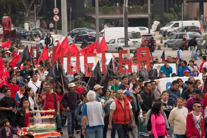 MÉXICO, D.F., 12NOVIEMBRE2015.- Diferentes organizaciones sociales se manifestaron frente al Palacio Nacional exigiendo justicia para los maestros privados de su libertas pertenecientes a la CNTE y la inconformidad que se tiene respecto la reforma educativa. FOTO: ISABEL MATEOS /CUARTOSCURO.COM