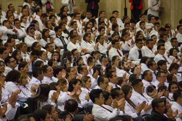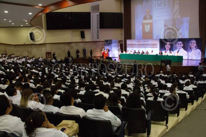 CIUDAD DE MÉXICO, 25FEBRERO2019.- En el Auditorio Uno de la Unidad de Congresos del Centro Médico Nacional, se llevo acabo la Ceremonia de clausura de médicos residentes del Ciclo Académico 2018-2019 y la Inauguración 2019-2020. En donde se destaco que más del 80% de los egresados se querrán a trabajar en el Instituto Mexicano del Seguro Social. FOTO: ROGELIO MORALES /CUARTOSCURO.COM