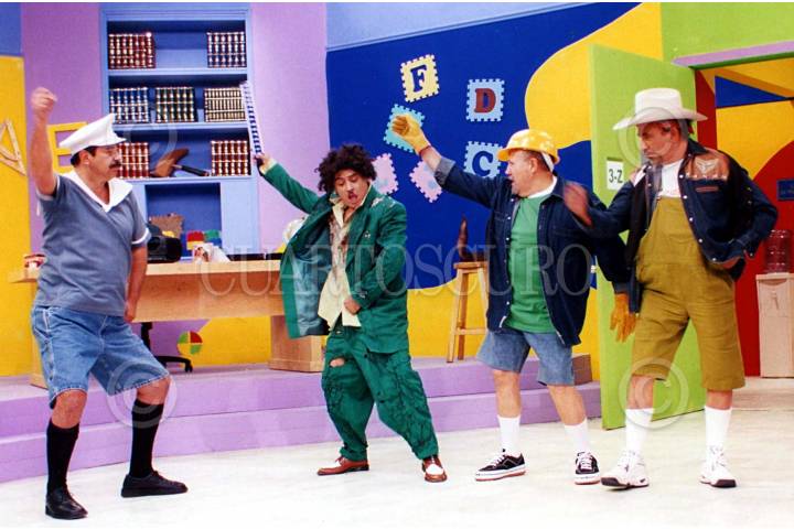 MEXDF 04JUNIO2004.- Rafael Inclàn participa en el programa de televisiòn ¨La escuelita VIP¨. Jorge Ortiz de Pinedo, David Villalpando, Polo Polo y Rafael Inclàn. FOTO: Germàn Romero/CUARTOSCURO.COM