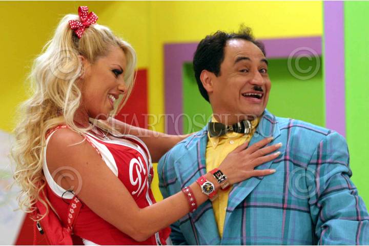 México DF, 15ENERO2004.- El elenco de la Escuelita VIP, invitó a los medios de comunicación a una de sus grabaciones. En el programa se integran estrellas como Roxana Martínez la ¨Tetanic¨, Lorena Herrera y Polo Polo. El programa es encabezado por el cómico Jorge Ortiz de Pinedo. FOTO: Moisés Pablo/CUARTOSCURO.COM