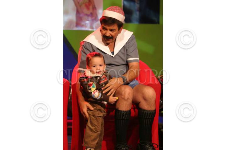 México DF, 15ENERO2004.- El actor y comediante Jorge Ortíz de Pinedo es acompañado de su hijo Santiago, durante la presentación formal para los medios de comunicación de su programa televisivo la ¨Escuelita VIP¨. FOTO: Moisés Pablo/CUARTOSCURO.COM