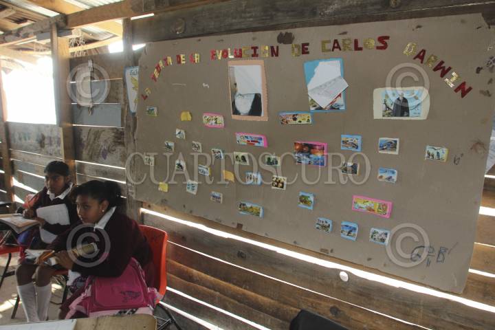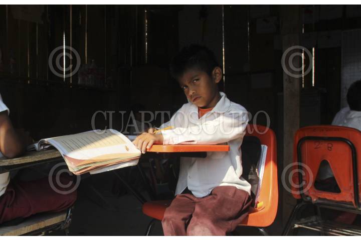 CHILPANCINGO, GUERRERO, 29ABRIL2013.- En la escuela ‘Pedro Ascencio Alquisiras’ ubicada en una zona marginada a 40 minutos de la capital de Guerrero; estudian aproximadamente 180 alumnos divididos en los seis grados. Bajo temperaturas de más de 30 grados centígrados, sin agua, luz, con piso de tierra y metidos en galeras de madera (a modo de salones), los niños tratan de aprender las lecciones para terminar de cursar la educación básica; derecho humano y reconocido para todos los niños, del cual el Estado debe de hacerse cargo y tiene la obligación de dar lo necesario para que los alumnos superen por lo menos la educación primaria, así lo expresó el director Joel Martínez Jiménez. FOTO: SAÚL LÓPEZ /CUARTOSCURO.COM