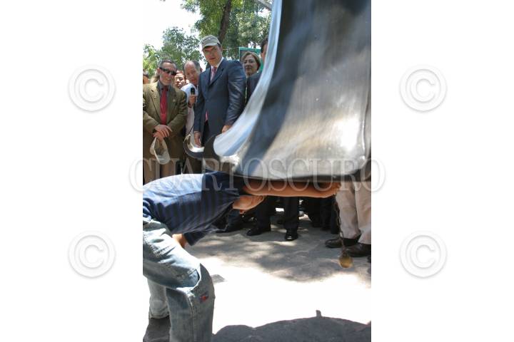 MÉXICO, D.F., 07JUNIO2009.- El alcalde de Mdrid Alberto Ruiz Gallardon, durante la inauguración de la muestra escultórica llamada campanas, esto con motivo de la Feria de las culturas a esta exposición fue acompañado por diferentes alcaldes de las naciones amigos de México. FOTO: RICARDO CASTELAN/CUARTOSCURO.COM