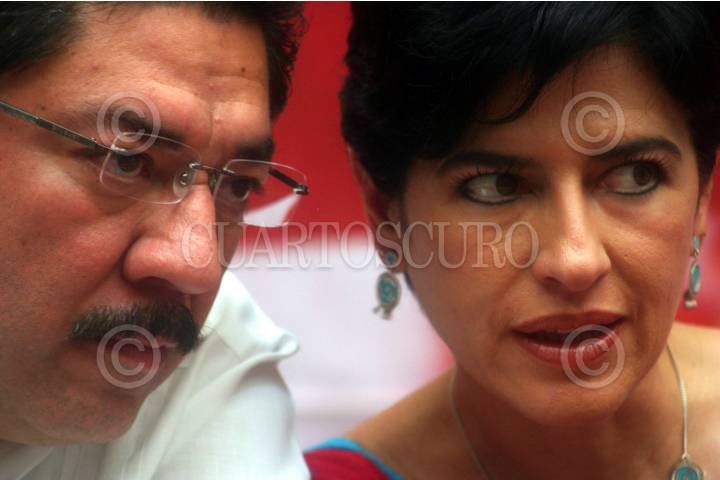 OAXACA, OAXACA, 19MARZO2009.- Ulises Ruiz Ortiz, gobernador del estado en compañia de su esposa Lourdes Salinas en la entrega de recursos y reconocimientos a artesanos Oaxaqueños donde se les dio una remuneración económica a tres artistas escultores destacados quienes exportan productos al extranjero. FOTO: MAX NÚÑEZ/CUARTOSCURO.COM