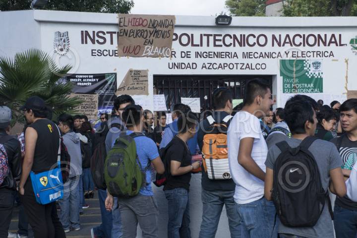 CIUDAD DE MÉXICO, 14JUNIO2017.- Estudiantes de la Escuela Superior de Ingeniería Mecánica y Eléctrica (ESIME) Azcapotzalco del Instituto Politécnico Nacional (IPN), mantienen cerradas las instalaciones para pedir la destitución del nuevo director Abraham Medina Obando. FOTO: MARIO JASSO /CUARTOSCURO.COM