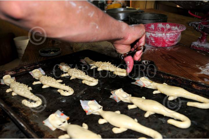 MORELIA, MICHOACAN; 27DICIEMBRE2008.- Cada oficio puede volverse en arte, cuando se sacan artefactos de inusual belleza, como es el caso de esta renombrada panadería en el centro de la ciudad de Morelia, donde se recrearon un entero nacimiento con todos los matices del pan, una virgen de Guadalupe y hasta un pavo, rigurosamente para deleitar la vista, mientras que los panecitos en forma de gatito, perro o lagarto con ojo de chocolate eso si, están a la venta todos los días del año, aun que en esos días de fiestas se antojan mas, hasta para regalar. FOTO: MARIA DI PAOLA BLUM/CUARTOSCURO.COM