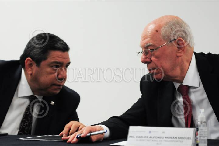 Carlos Alfonso Morán, subsecretario de Comunicaciones y Transportes, dialoga con Víctor Hernández, director general de SENEAM.