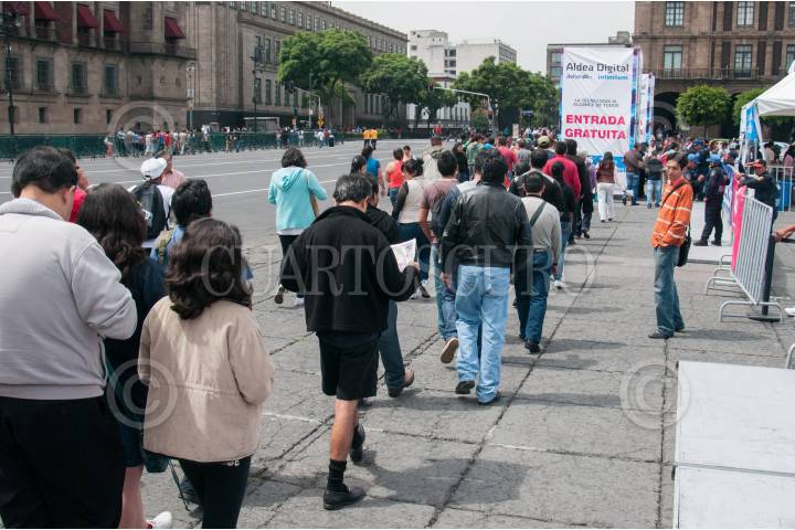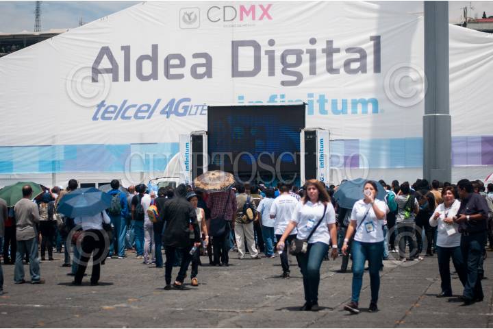 MÉXICO, D.F., 10JULIO2015.- Cientos de personas de todas las edades asistieron al primer día de la Aldea Digital, el evento sobre tecnología más grande del mundo, que estará abierto al público en forma gratuita del 10 al 26 de julio, en donde el público podrá aprender sobre el manejo de internet, gadgets, y entretenimiento digital sin importar su nivel de conocimiento en tecnología. FOTO: DIEGO SIMÓN SÁNCHEZ /CUARTOSCURO.COM